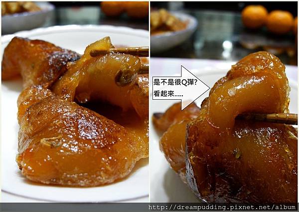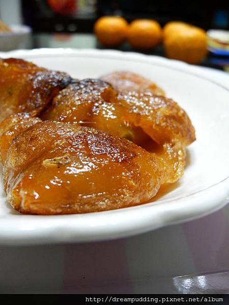 但是還是有外酥內Q軟喔,布丁弟也說好吃,只是賣相很不佳就是......。口感的話還挺不錯的,Q軟帶彈還有點甜蜜,而且品嘗的時候還聞到到那香甜的金棗氣息,要不是嘴巴嚼的是年糕,我會以為我現在在咖啡廳喝著金棗口味的水果茶演貴婦。