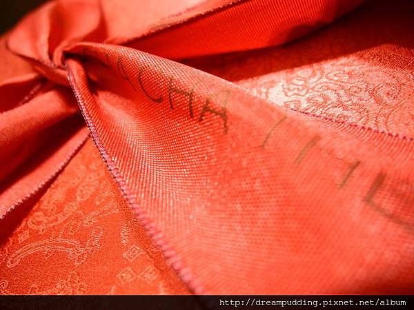 張燈結綵系列是喜氣的紅,話說是我最近古裝劇的成親戲碼看太多嗎?怎麼在拆這緞帶時有種古代新婚之夜輕解新嫁娘嫁衣的感覺,紅的好喜氣喔。