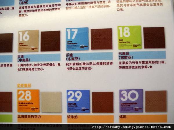 各式各樣的巧克力製作,每個號碼都代表著其巧克力獨特的口味。