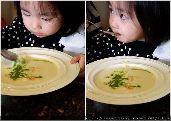 可愛的緗喝得很滿意,整碗湯都她解決的。