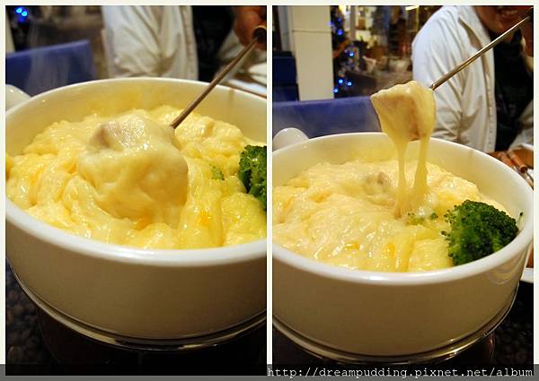 服務人員在示範過如何吃起士鍋後會幫顧客將起士鍋攪拌避免鍋底燒焦,攪拌過後起士好像炒蛋,看起來超可口。