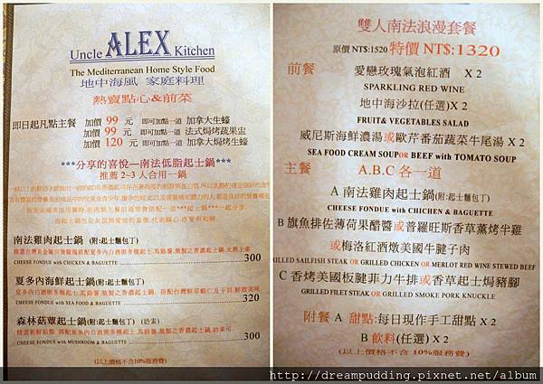 Uncle ALEX kitchen的服務親切熱情,待顧客就像對待家人一樣,讓人感覺溫馨;餐點的話起士鍋跟焦糖奶茶已經是我每去必點的了,目前還沒在別的地方吃過這特殊的起士鍋,還沒吃過的朋友很建議來吃喔!情人節快到了,還沒想到跟另一半去哪間餐廳的快打電話來訂位吧!