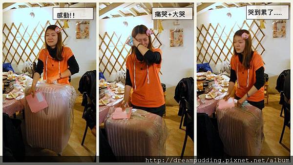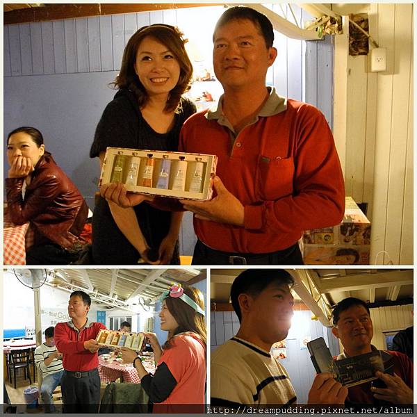因為寫部落格認識了一群好朋友,這次在外漂流許久的阿浪哥突然神經接上了想到大家,說要來辦個尾牙交換禮物大會,還提了幾個日子讓大家選,剛好有其中一天是我的生日,而那幾天我也只有那一天不用上班,所以這次的尾牙交換禮物大會就訂在我的生日,我還都不敢跟大家說,怕焦點模糊,沒想到還是被大家發現了,讓我過了一個哭得好累的生日天,到現在起,我一回想那天的情形我仍然感動到想哭。