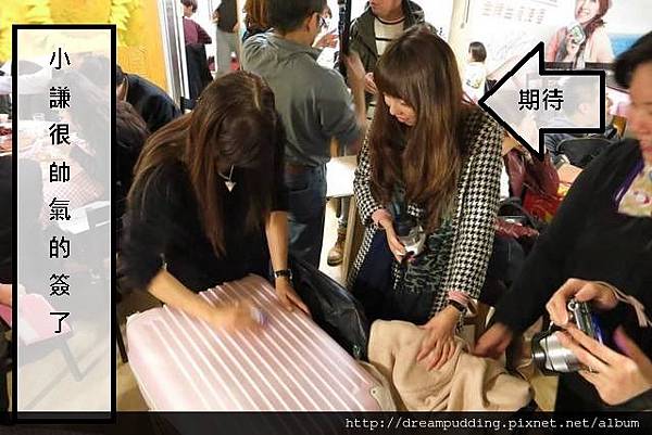 然後到小花簽名的時候,我發現她很興奮且手在顫抖,一直說著:我簽囉我簽囉~