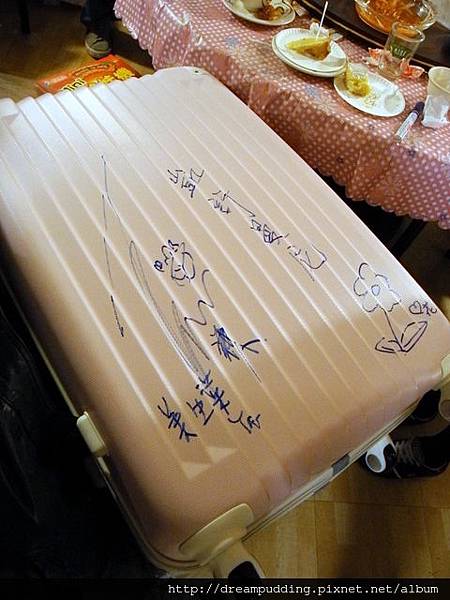 然後我也忘記是誰提到說本來想在上面簽名的,當時的我也覺得當然要簽名啊!因為這個行李箱代表你們對我的疼愛,當然要留下紀錄啊!