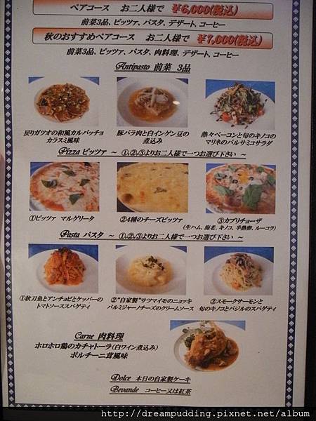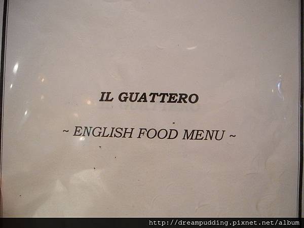 餐廳的名字是IL Guattero,有英文跟日文菜單,沒有會中文的服務生,我們英日語也不好,可是服務生很積極且熱忱地跟我們溝通並且介紹菜色,雖然我們有聽沒有懂,但他還是很親切地帶著微笑跟我們比手畫腳,我第一次比手畫腳到這麼感到開心的。
