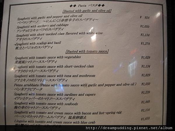 回國的前一天,扣掉車票跟搭利木津巴士到機場的日幣,我們大家已經花到一毛不剩了,所以這晚餐只能靠刷卡來換現金了,是說這是離開日本前的一餐,所以大家一直在搜尋到底要吃什麼好來對這趟旅行畫下一個完美的句點,突然想起來我們都還沒吃到義大利麵,聽說日本的義大利麵很好吃,然後我們就在這間百貨公司每層樓尋找看起來值得畫完美句點的義大利餐廳,拼命地找了找,找到最後一堆店都關了,結果找到後面變成找還沒關的店..............。
