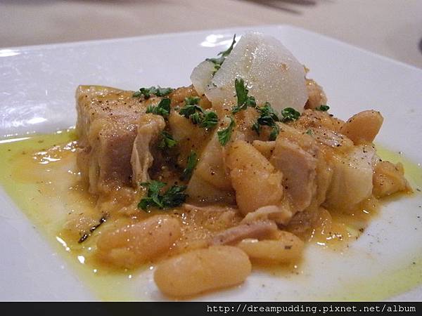 加豆類下去燉煮的肉,全熟的,我覺得有點像爌肉的口感,但他是不肥的。