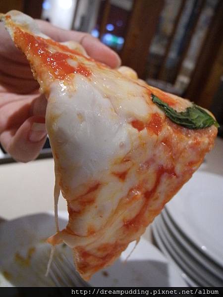 起士給的很多,番茄不會過酸,整體口感也不會過鹹,餅皮薄脆帶點嚼勁,這個披薩好吃喔。