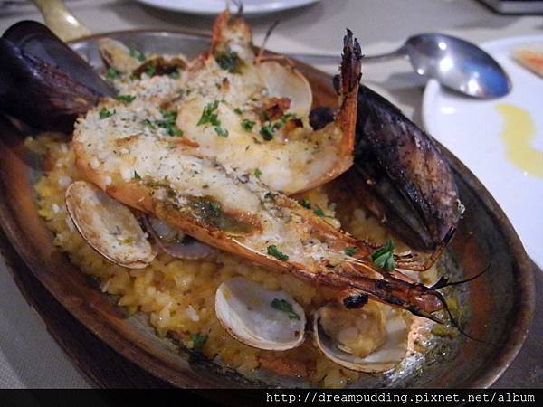 西班牙海鮮飯,很香,且熱燙,米飯很有味道,可惜略乾。