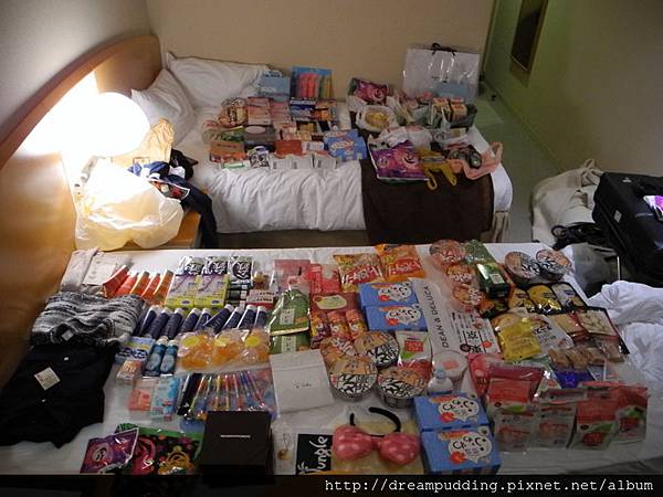 一直說著不買的人,結果還是買了整床,女神買了一堆吃的;豪哥在迪士尼失心瘋,因為他有太多小孩,不是,是太多親戚的小孩要送見面禮;拖鞋買的少但單價高;小花從第一天到最後一天都說不買,結果買到鋪滿整張床還越界到另一張床的就她;我在台灣的時候就有說我要買了,結果此行我買最少?????才半張床不到,天啊,我是乖寶寶。