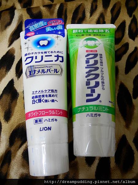 日本的牙膏還不錯洗,洗起來不會太涼,右邊綠色的是有顆粒的,我比較喜歡左邊那罐LION的,洗起來感覺挺細緻的又不會太涼。