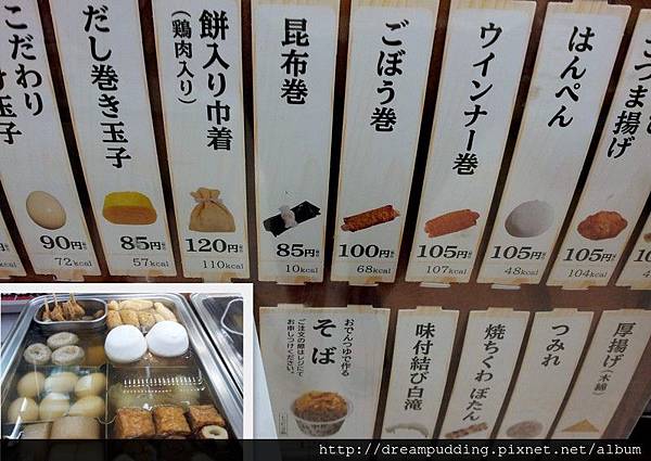 這是在全家便利商店買的關東煮,圖左下有兩顆白白的浮起物,就是圖右上第二個都是日文那個白圓球105元,我們有買,口感好特別,輕飄飄地又蓬鬆,有空氣感,我這次去日本還要再去買他!