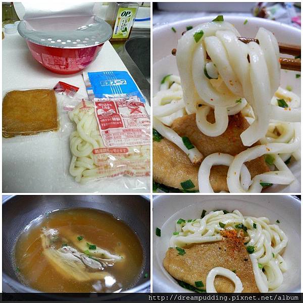 裡面是Q彈的烏龍麵,還有附豆皮阿,我還自己加了鵝肉,就說我煮泡麵跟水餃很厲害吧!(驕傲)