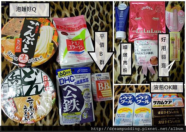 DHC在日本買真的是便宜到不行,先在台灣看型錄之後去日本瘋狂買吧,他的護唇膏一條在日本不到台幣200,抹完我都覺得嘴唇好柔軟,這次去日本要瘋狂買他;圖中間的B群吃起來藥味不會太重,價格我記得也不貴,圖右下有個白底黑字的是液態OK繃,傷口洗淨後塗抹他會形成一層膜防水,不過塗上去的霎那很痛。