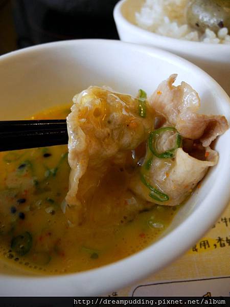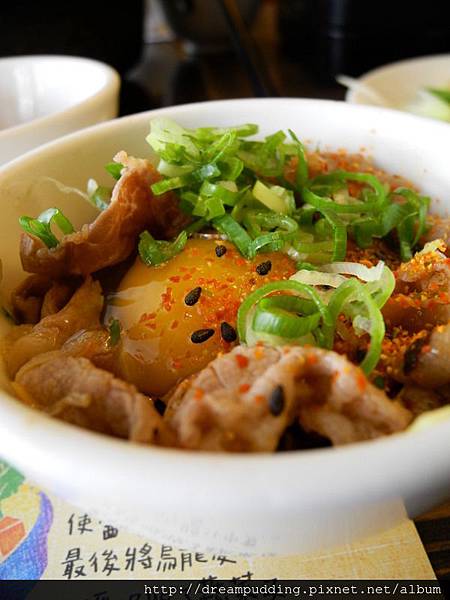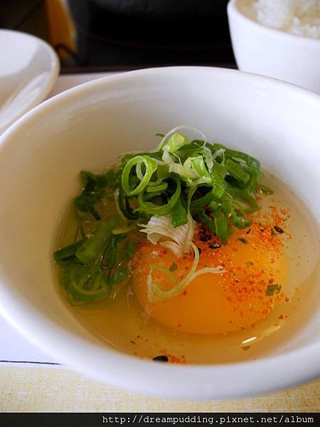 黃澄澄的蛋加上蔥花再撒上七味粉,喇一喇之後,就可以拿來沾肉啦(流口水)~