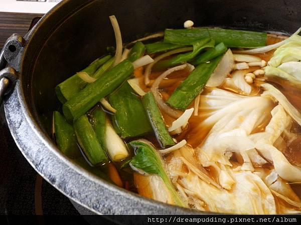 點鍋都會附菜盤,配菜大同小異,端看客人您喜歡怎麼個添加法,是說一開始要先把蔥段跟洋蔥放到壽喜鍋裡去煮滾讓他入味喔。