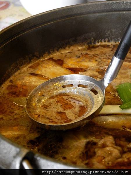 地獄辛口鍋由於是辣鍋的關係,所以需要瀝到油,是說這瀝油的湯勺也太好用了吧!