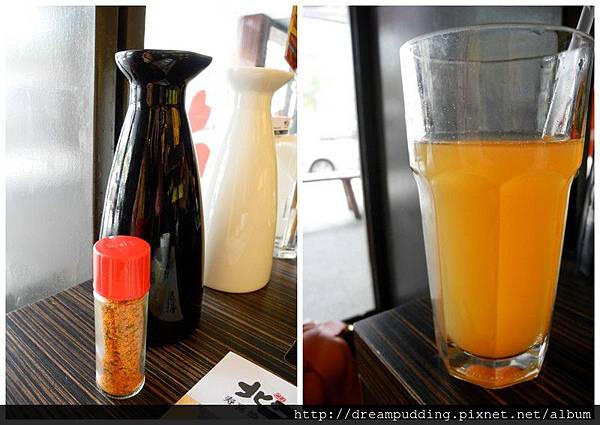 圖左的小黑是讓肉下去受洗的壽喜醬汁,小白是稀釋鹹度的白開水;圖右是飲料,很大杯,我喝完一杯就飽了,根本沒辦法以杯換杯阿(淚)