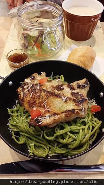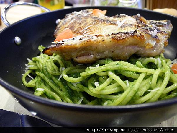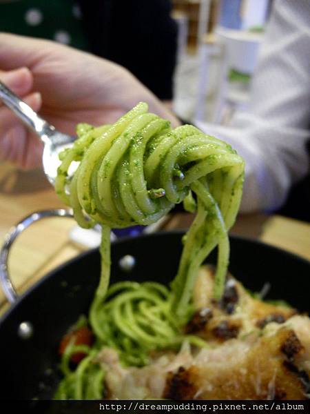 青醬的味道頗重,麵條是我喜歡的有彈性且醬汁完全巴在上頭連麵條都入味的那種。