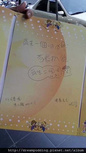 然後原來老闆夫妻是焦糖糖的粉絲,那天不知道怎麼地認出焦糖糖,很激動地拜託阿豪師傅來跟焦糖糖要簽名,然後我們也順便給他簽了,哈哈哈