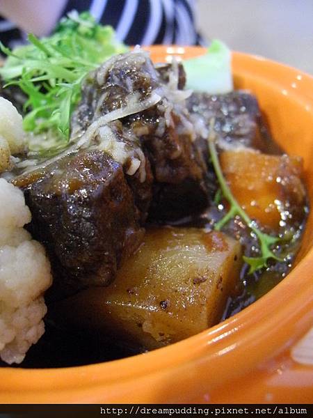 牛肉給得十分大塊,口味上有些重,但是非常入味,配飯或是配麵包都很讚!連一旁的紅蘿蔔也燉煮到沒有苦味。