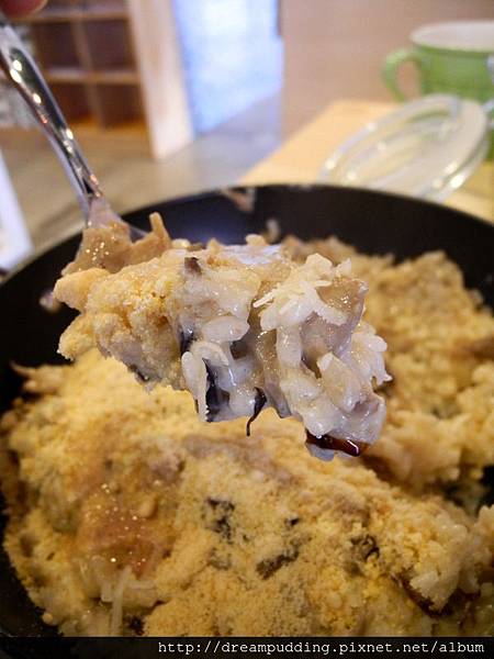 肝醬遇熱之後融化在米粒中,更增濕潤跟濃郁。