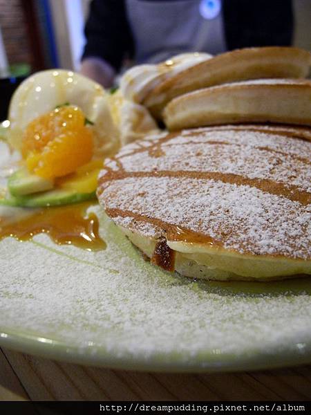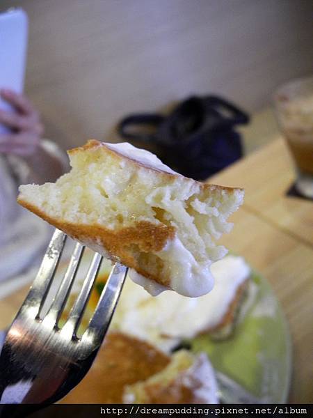 阿豪師傅的手工鬆餅吃起來口感是濕潤的,香氣也夠,我跟女神一盤吃不完阿。