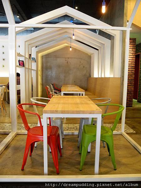 店內設計的像是房中房,好多一格格的小房子支架,很有趣。
