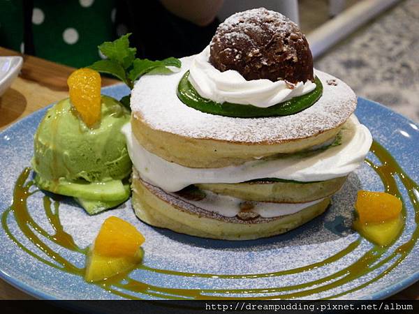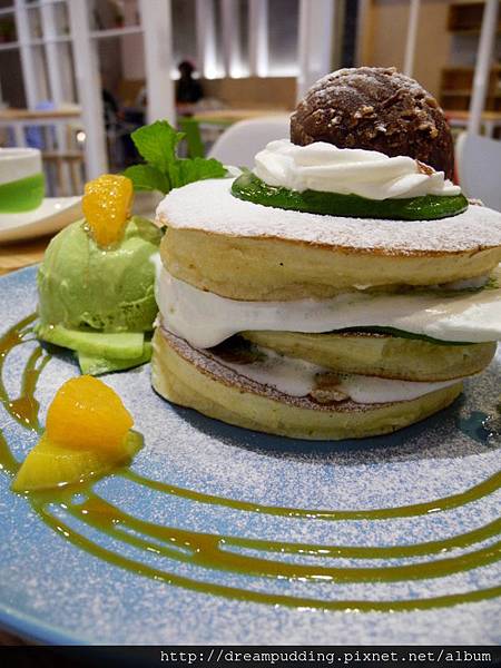 第二天看到鴻團長還有焦糖糖在FB打卡,我跟小花還有女神就要跑來吃了,本來我跟小花只打算點一份義大利麵填飽肚子,沒想到看到鴻團長相機裡的抹茶卡士達紅豆鬆煎餅賣相之好,我跟小花又把放進包包裡的荷包又拿出來跑去櫃檯加點,明明知道吃不下的,可是我們還是跑去加點了,還好鴻團長沒繼續再讓我們看他拍的精選輯,不然再這樣下去,我們大家的荷包會越來越扁(淚)