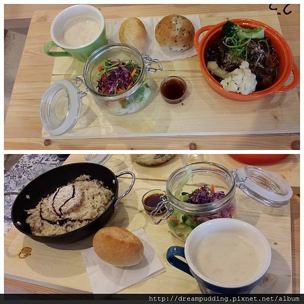 套餐部分會是一個沉重的木板上面放著沙拉、麵包、主食及湯。