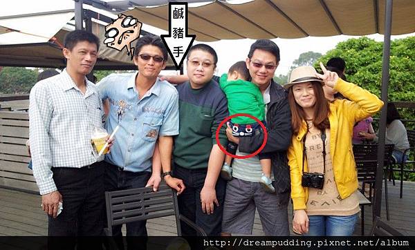 一手穿越人群放在人家的肩頸處,另一手緊抓住他兒子的屁股,這是老少咸宜的意思嗎?