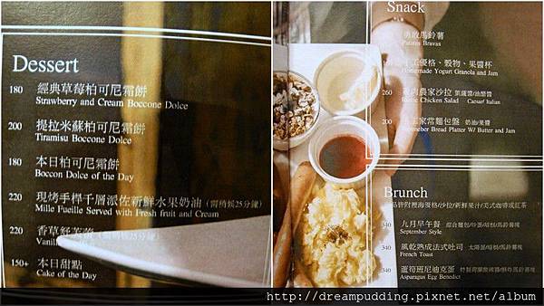 除了甜點還有販售早午餐,台北的價位果然是比台中高了一些,早午餐大多300多,本來我們還覺得價格略高,但一看到份量就知道他為什麼會略高了。