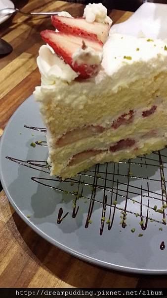 切片草莓蛋糕,NT150元,因為她的鮮奶油太好吃,所以我們又追加蛋糕,可是卻有點小失望,雖然鮮奶油一樣很美味,但是蛋糕體跟草莓都有點略乾。