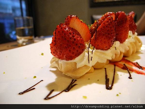 蛋白霜餅就像是硬的棉花糖,咬下去時感到一瞬的脆,然後再一秒,就入口即化,就那麼一瞬,甜蜜感漫佈再迅速減退,好好吃阿,可惜也是沒幾口就沒有了,不過如果吃多,或許就不會感到她美味了。