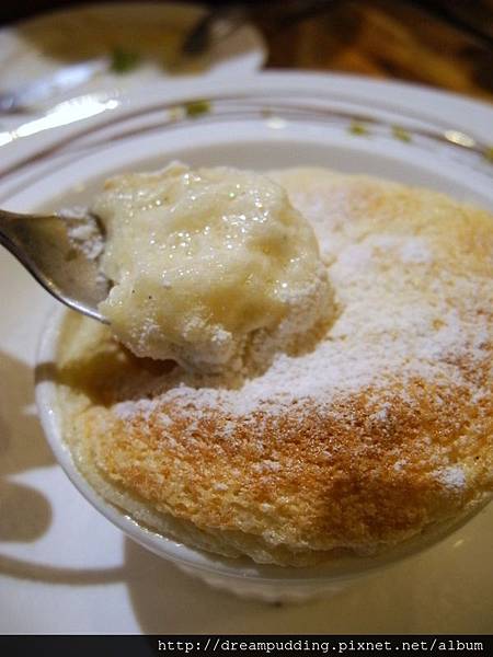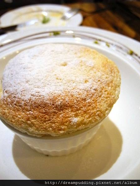 現烤舒芙蕾,NT220元,這裡的舒芙蕾沒有澎的很高,口感較濕潤且軟稠,比較不合我胃口,相較之下,我比較偏愛蛋白霜餅。