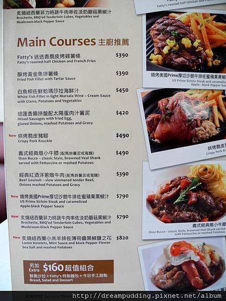 也有焗烤跟主餐,主餐可另加價升級套餐就附沙拉麵包跟甜點。