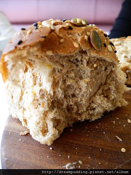 麵包有五穀雜糧,且感覺沒什麼糖,吃起來口感原始挺不錯吃的。