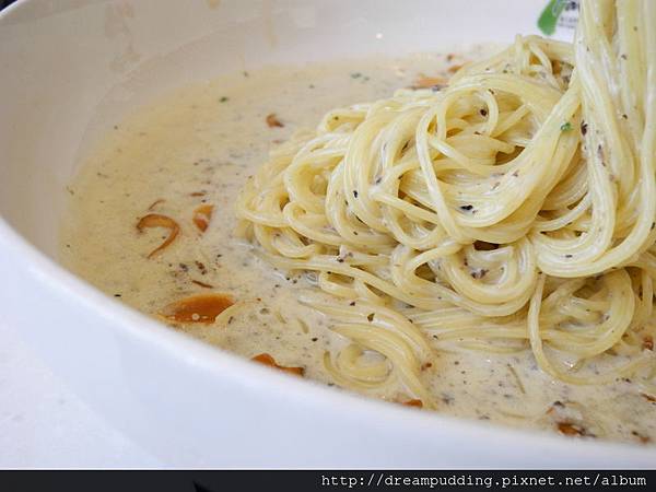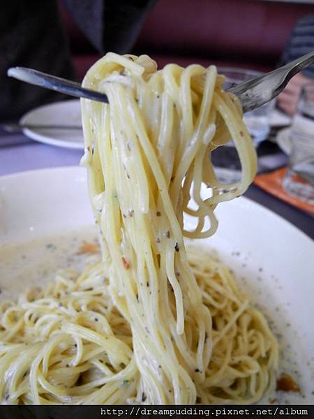 天使細麵不會過軟,麵條跟醬汁也有合體,但是份量太多了,到後面我們吃不完。