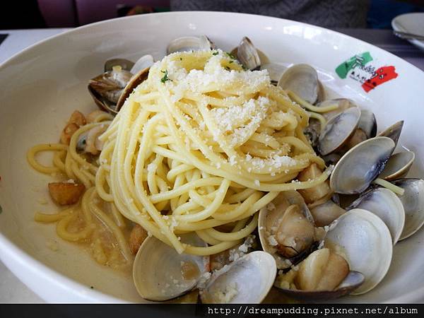 清炒蛤蠣義大利麵NT330元,我覺得麵條偏軟,但是蛤蠣都很大顆且鮮甜。
