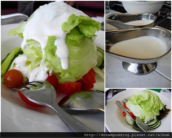 沙拉附的是優格醬,酸甘清爽,不過若是沙拉葉能小片一點會更好,一大片勢必要咬過來咬過去。