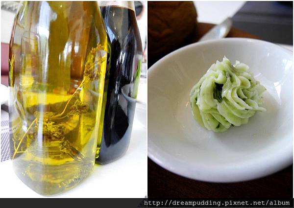 麵包沾醬除了桌上的DIY油醋之外還有香草奶油。