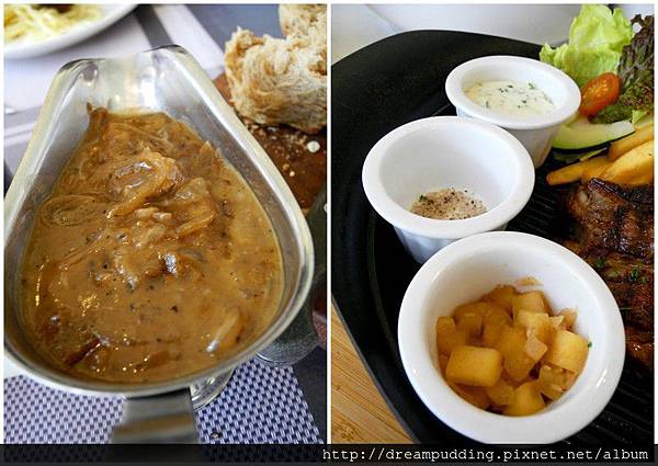 醬汁很多,有濃郁,而且餐點上桌後會有服務生馬上過來問你要不要加起司,你如果答應了,她就很像起士不用錢似的很拼命撒。