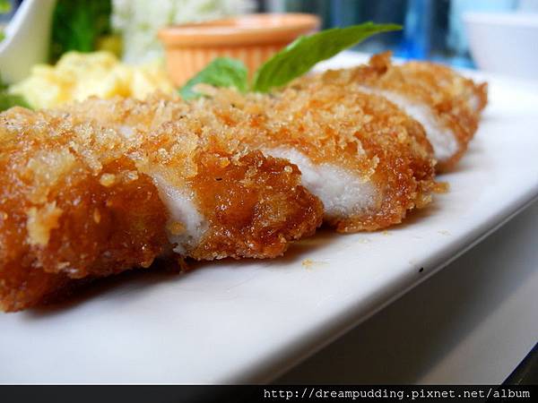是說這豬排吃起來口感緊實卻不會過乾,麵衣微酥,是好吃的豬排。