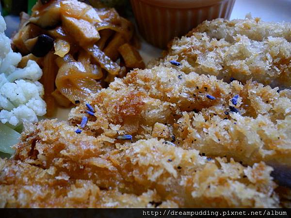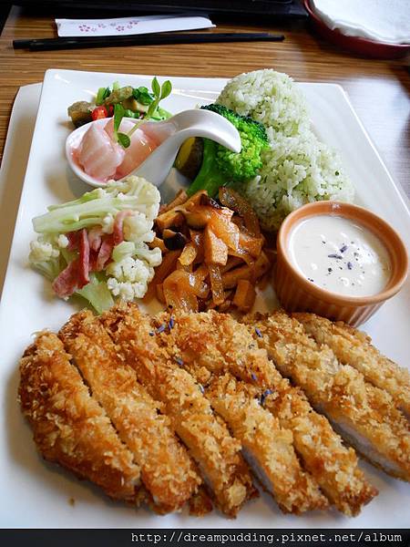 普羅旺斯薰衣草豬排套餐,沒想到蟹老闆會點名字這麼美的餐點,結果原來是女神點的,哈哈,就說女神最浪漫了,這次跟她去日本參加三社祭,她給了我好多好多驚喜,我不會忘記我們的西瓜卡事件的>////<