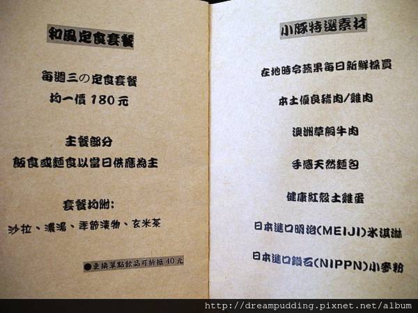 菜單跟之前有些些變動,前陣子小豚整修了,不知道會不會又有新菜單出現。