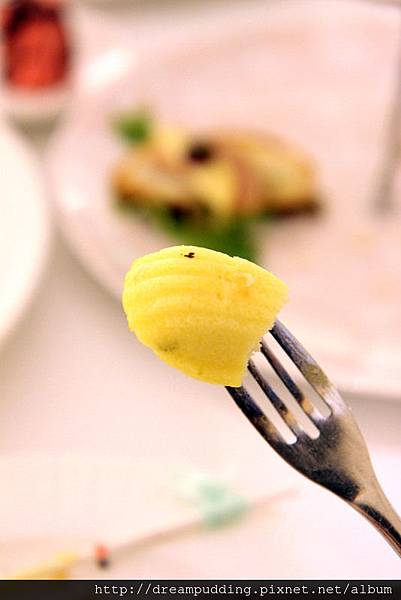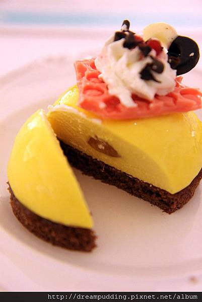 檸檬塔,這個我好喜歡,我一向害怕檸檬塔的,因為我超怕酸,可是水相的檸檬塔是酸中帶甜的酸甘酸甘的,裡面的餡是微微軟滑的,而且個頭不大,所以我可以一次解決他,我本來要跟索爾哥分一半的,但是這個很合我胃口,所以我就自己吃掉了。