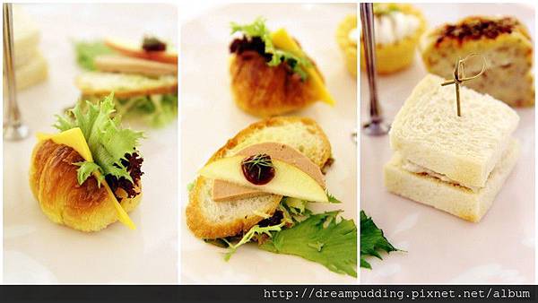 還有很多迷你的小點心,都很可愛,且有裝飾,不是隨便放放了事;我最喜歡圖右的鮪魚小麵包夾心,鮪魚拌了美乃滋讓口感帶點甜且滑,土司也軟,吃起來很滿足又幸福。