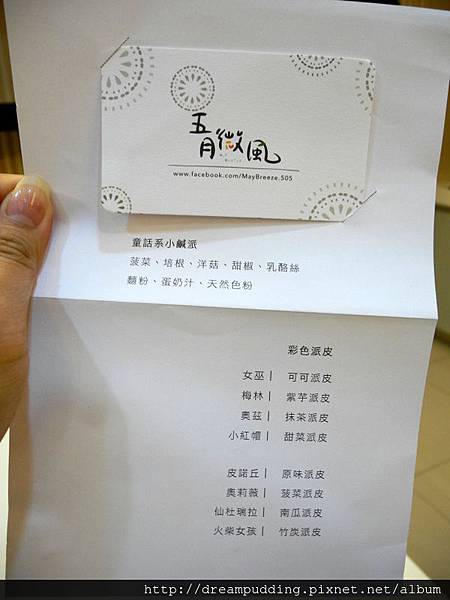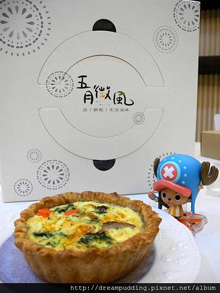 友人小茶有著一身的好手藝,懂得生活也懂得品味,常常看他在FB上大展廚藝,半夜看到總是會讓人飢腸轆轆,在千呼萬喚之下,小茶的手工鹹派總算誕生了,有個讓人感覺如沐春風的名字~五月微風。