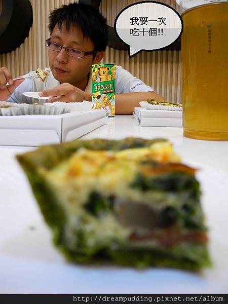 因為內餡一樣,所以剛吃的時候不覺有太大的差異,而是在單獨品嚐派皮時會嚐到每個絲絲不同的口感,此外就是咀嚼入喉之後那獨特派皮越過內餡散發出來的感覺,這個綠色的是抹茶口味,咀嚼入喉之後會有著淡淡的茶香雅致,我們都很喜歡。